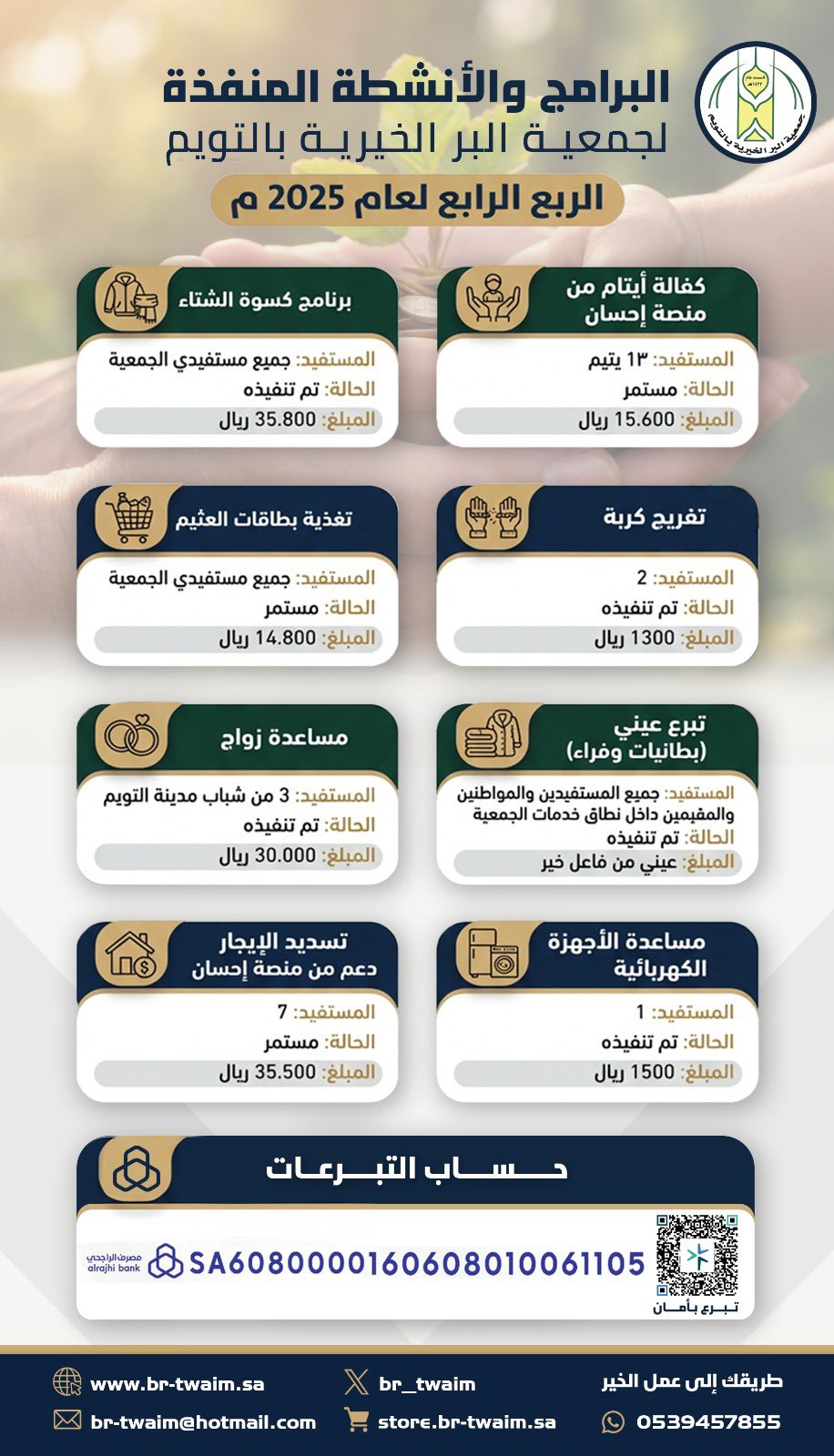 تم بحمد الله تنفيذ عدد من البرامج والأنشطة للربع الرابع لعام 2025م